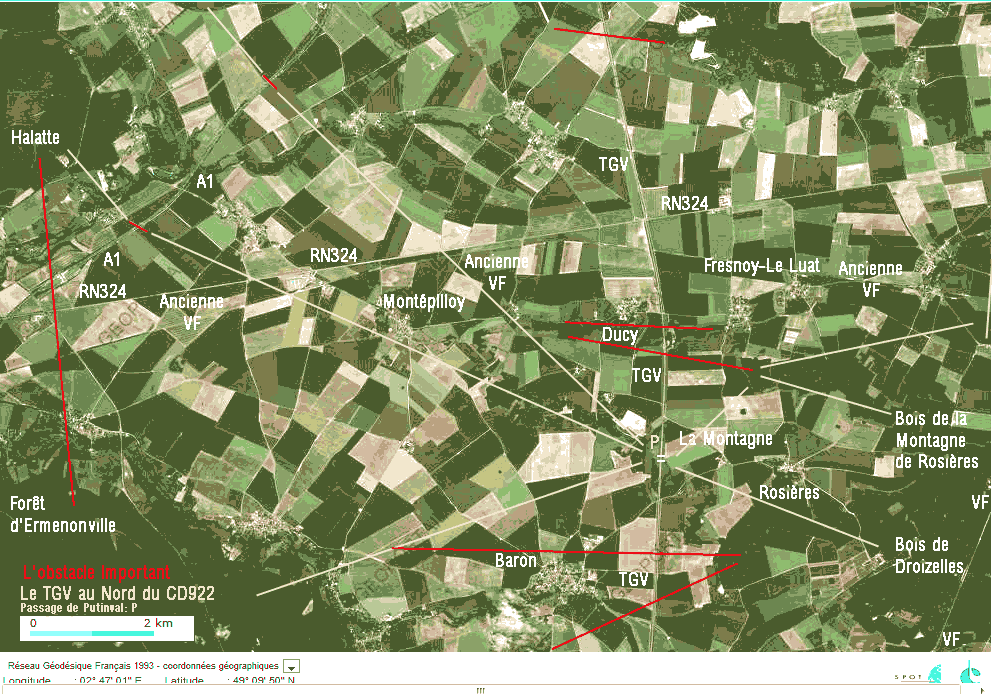 Pas besoin de longs commentaires: sur l'image de Géoportail, on voit clairement qu'un des bois les plus giboyeux du Val d'Ysieux, le Bois du Tremblay, se trouve en 2009, non seulement coupé des Massifs de Carnelle et de Chantilly, mais "génétiquement coupé", pour la faune, de tout renouvellement de population...